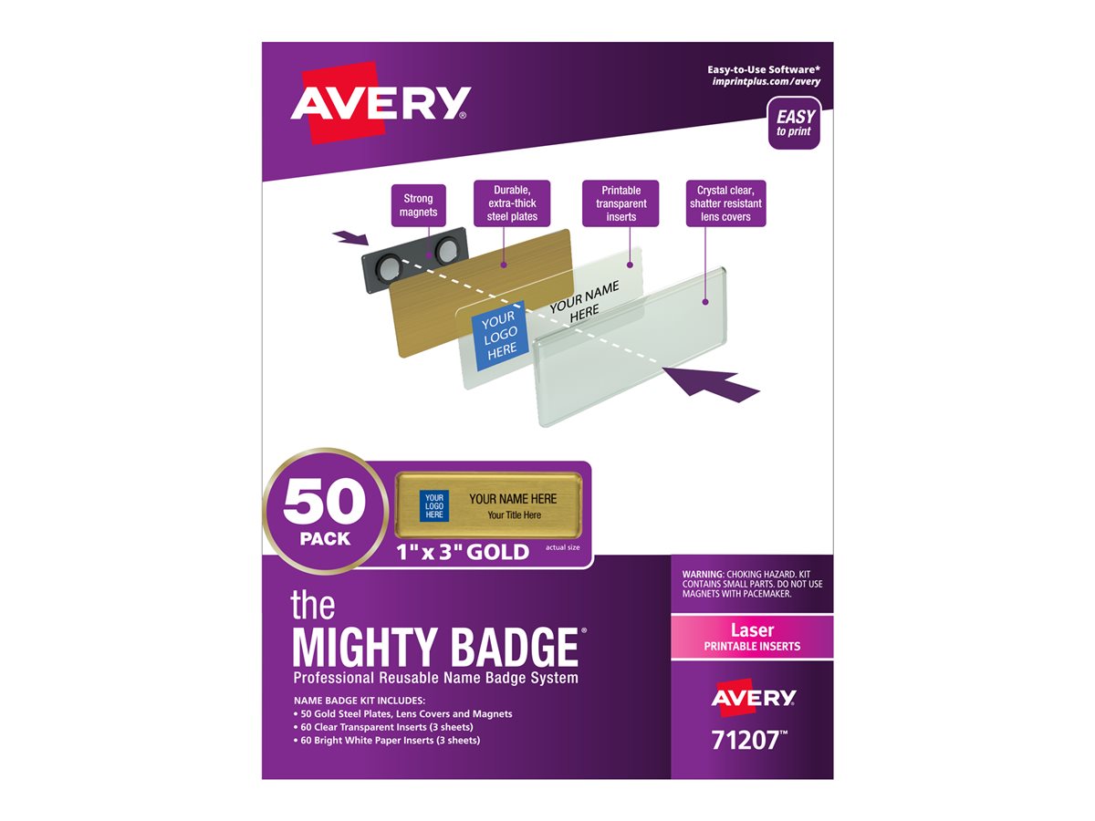 | Product Description | Avery The Mighty Badge Professional Reusable Name Badge System - name badge labels - 120 label(s) - |