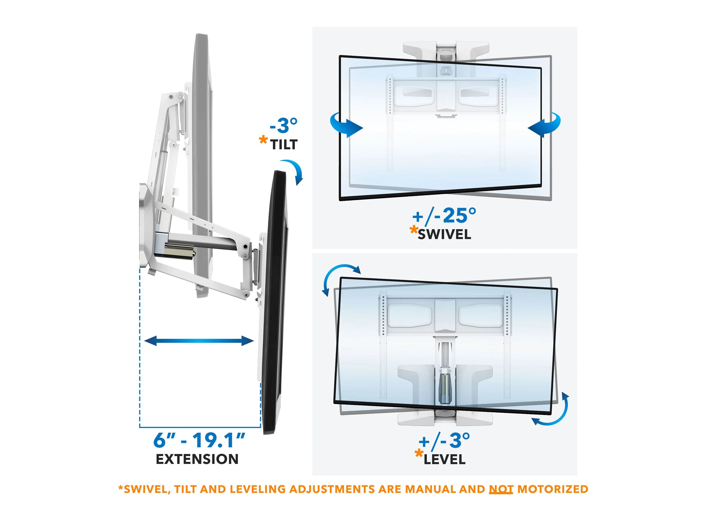 | Swivel | -25° to 25° |